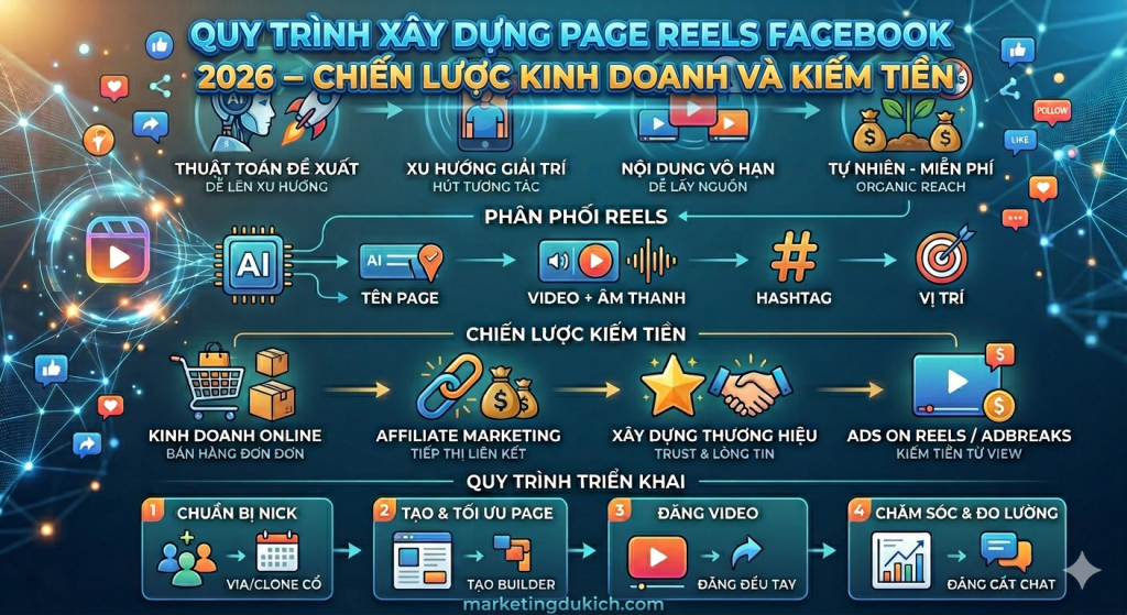 CHI TIẾT VỀ QUY TRÌNH LÀM REELS PAGE FACEBOOK 2026 Lí do tại sao nên làm Reels vào thời điểm này – Là cách xây page phổ biến nhất hiện nay, phù hợp với thuật toán FB hiện tại, từ dân newbie đến pro đều dùng cách này để xây – Hơn nữa đơn giản […]